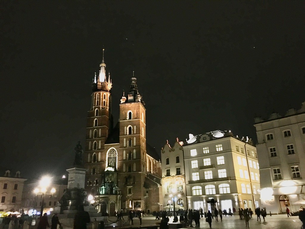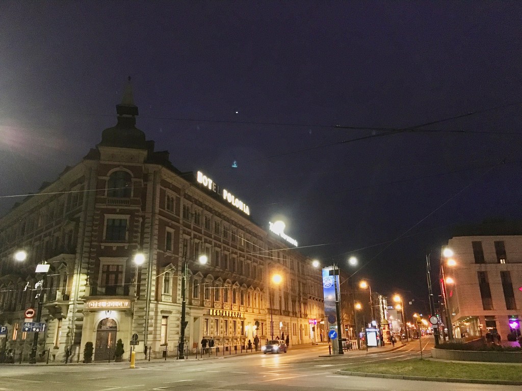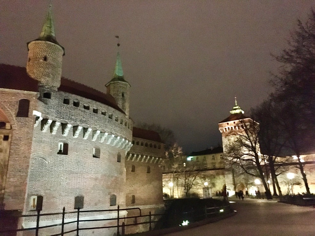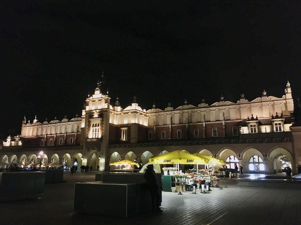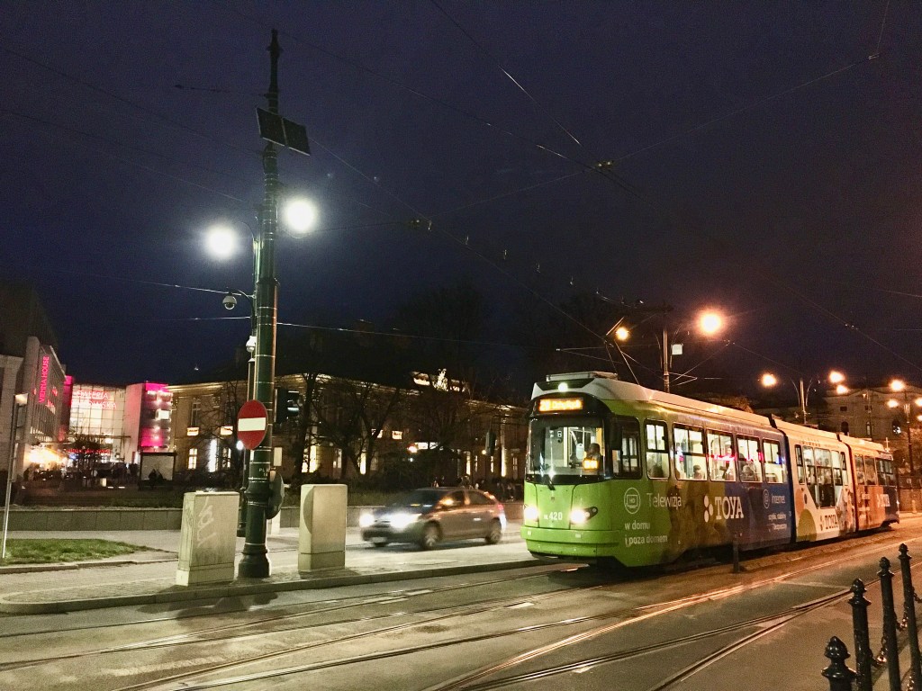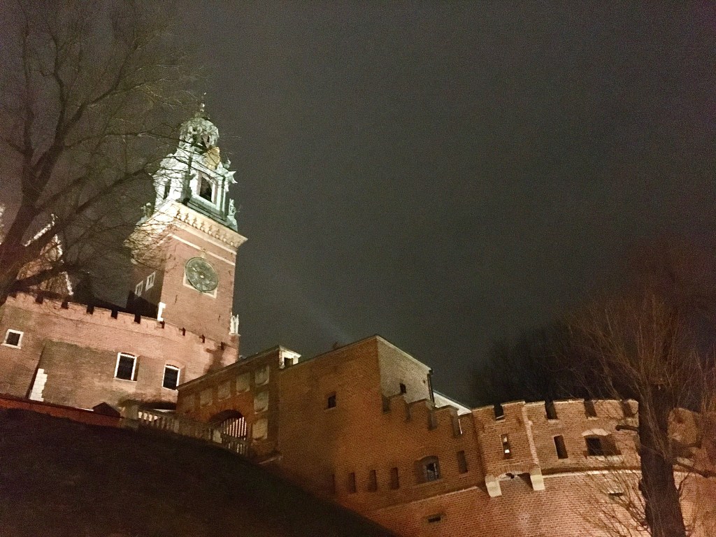 找到三台之後,就這樣一路乘著Kraków老城夜晚的風(三月初還是有點冷),