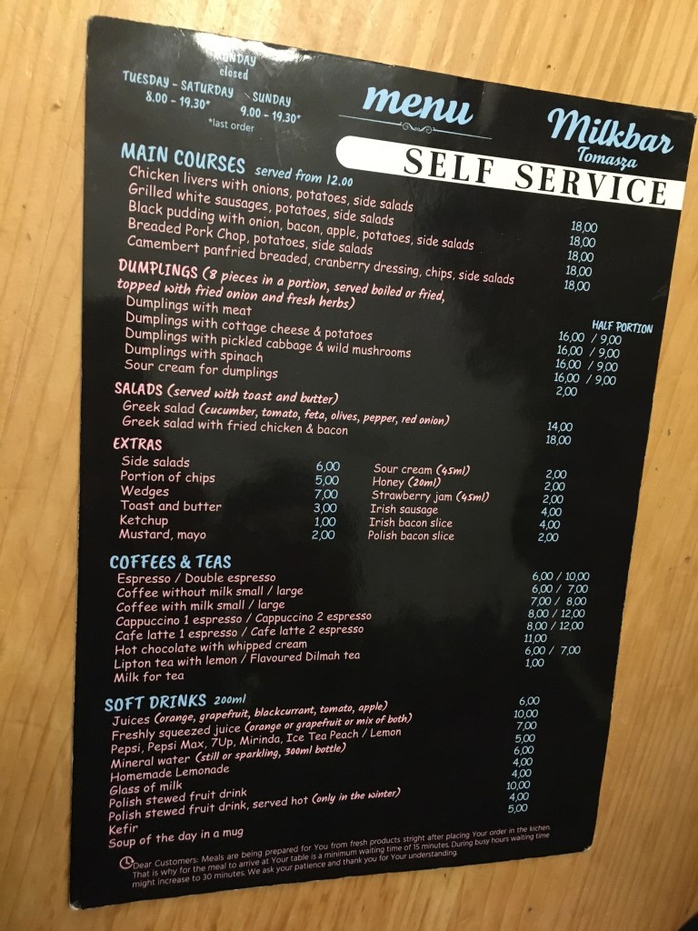 我們選了Milkbar Tomasza進去體驗一下當地風味,食物個人不是很喜歡,不是我的菜XD