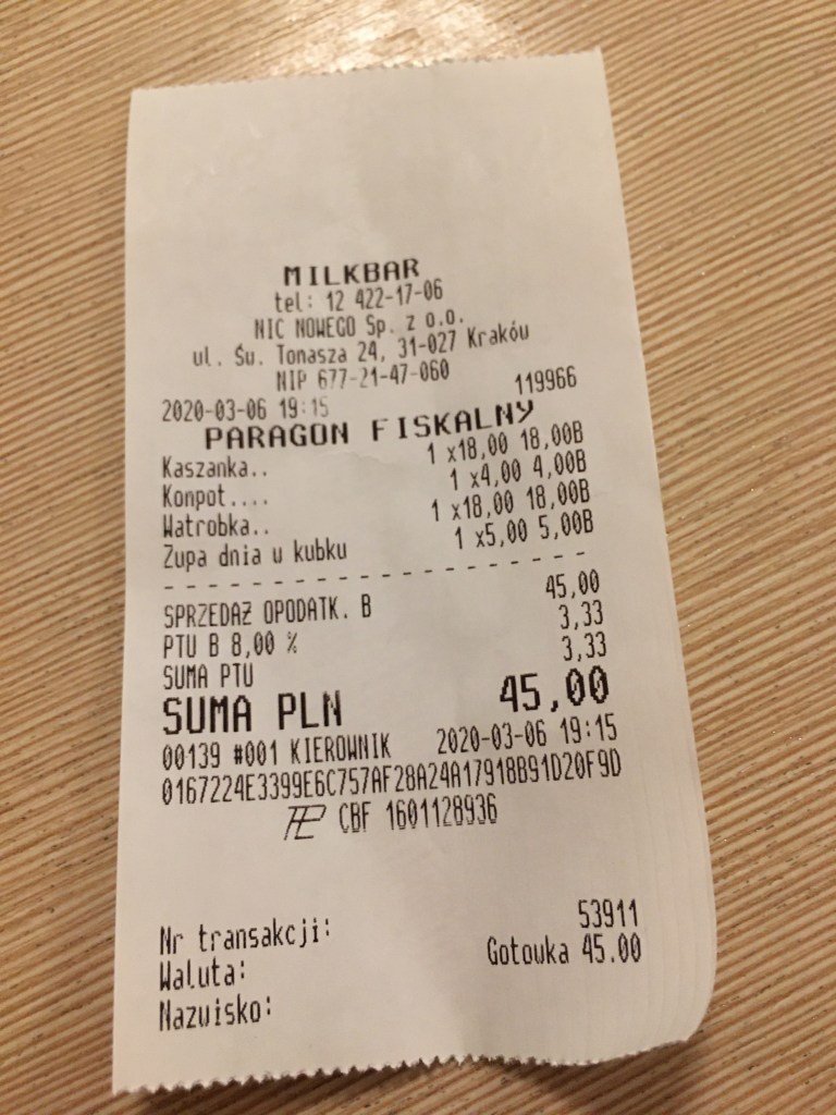 三個人吃下來45 PLN (350幾塊台幣)