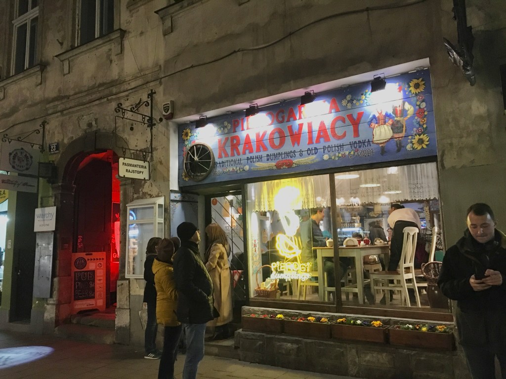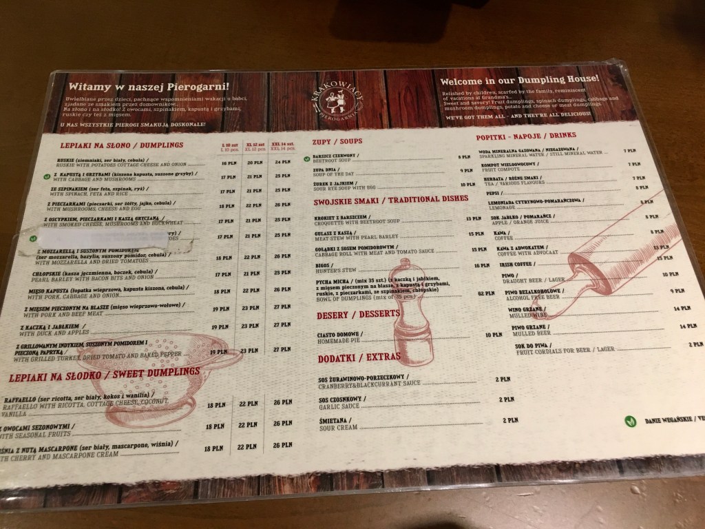 找到一間算有名評價也不錯的餃子店Pierogarnia Krakowiacy,也是一間有連鎖分店的。跑了第一家,服務員說客滿要等很久不接客,跟我們說去另外一間分店看看……..